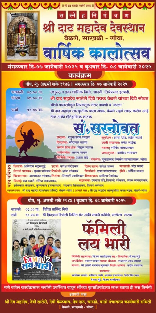 Shree Dhad Mahadev Varshik Kalotsav Varshik Kalotsav will be held on 7th January and 8th January 2025.(to be contd.)